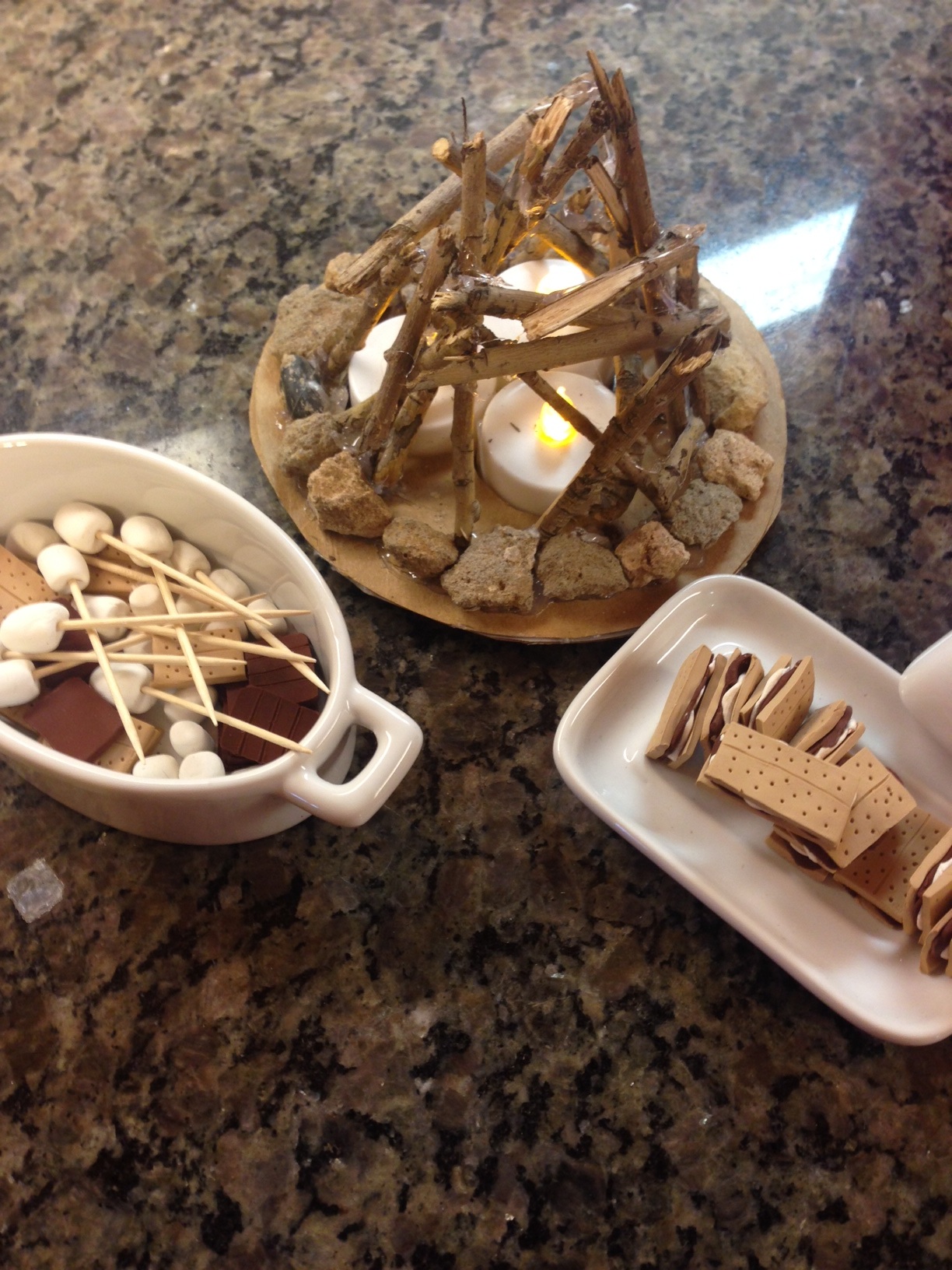 After all the fun, Dave lit the fire pit while we finished our remaining crafts and the girls got to enjoy their s’mores. We had 2 different kinds of chocolate, 2 different kinds of graham crackers, and 4 different kinds of marshmallows to choose from! It was fun watching the girls make different s’more creations. They grabbed their skewers and had a great time laughing and roasting marshmallows together. We had cupcakes earlier in the evening so I limited the girls to 2 s’mores each so they wouldn’t be bouncing off the walls for their mothers later! lol