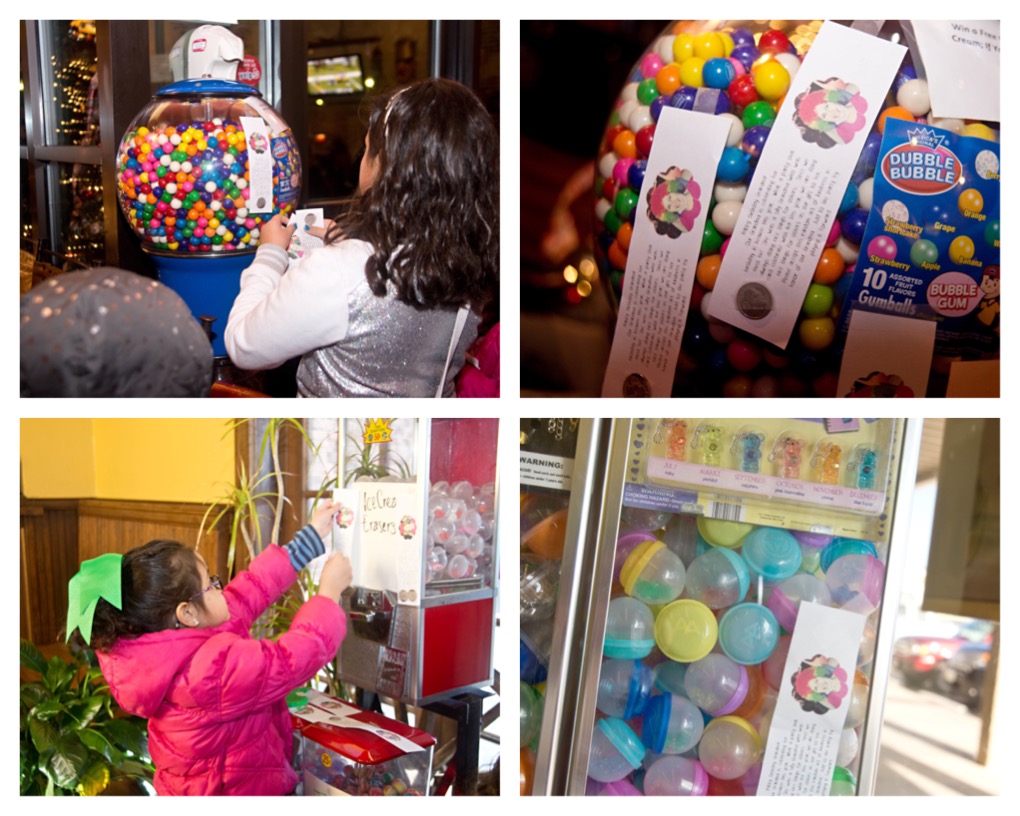 We taped quarters to vending and gumball machines everywhere we went.