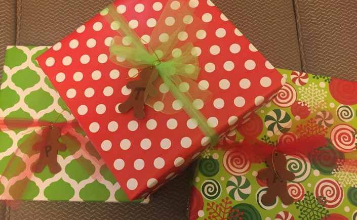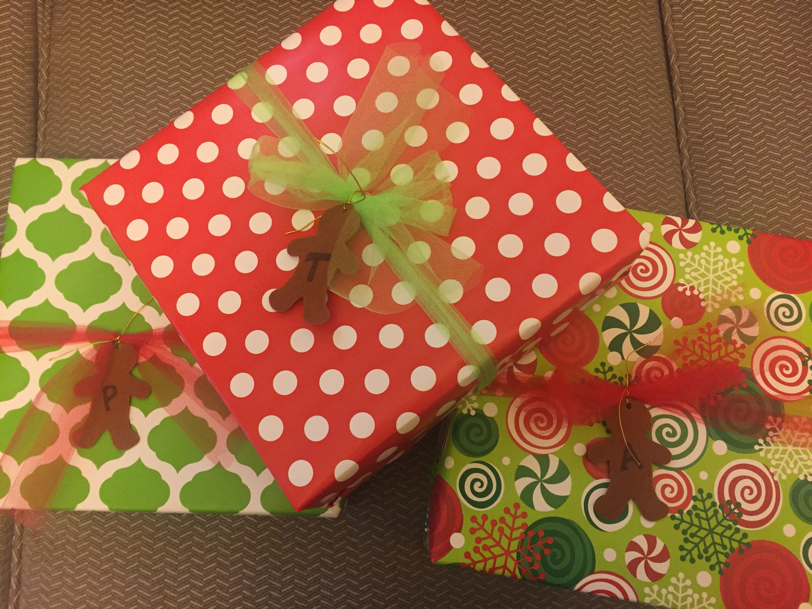 This is our first year doing something like this and I really liked having a little check list to go along and it kept me from going insanely overboard. I found some cute little felt shaped tags at Target and assigned a category to each shape. When it’s time to open gifts, we will hand out all the gifts with the same shape out together that way they are all opening their pjs together or their books together. Should be fun!